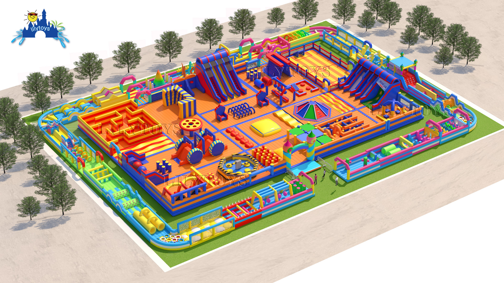 Wrapping around the castle’s exterior is an expansive, exhilarating obstacle course that takes the fun to new heights. This full-circle challenge features a series of exciting hurdles, climbs, and slides, inviting families to embark on a thrilling team adventure together.